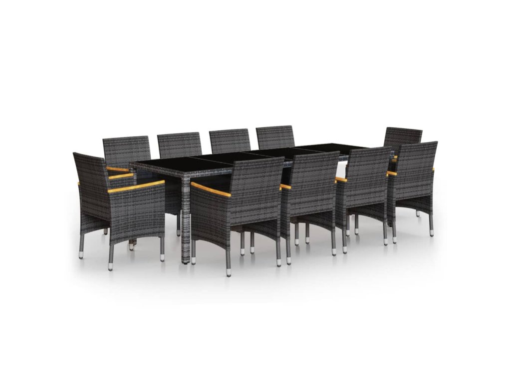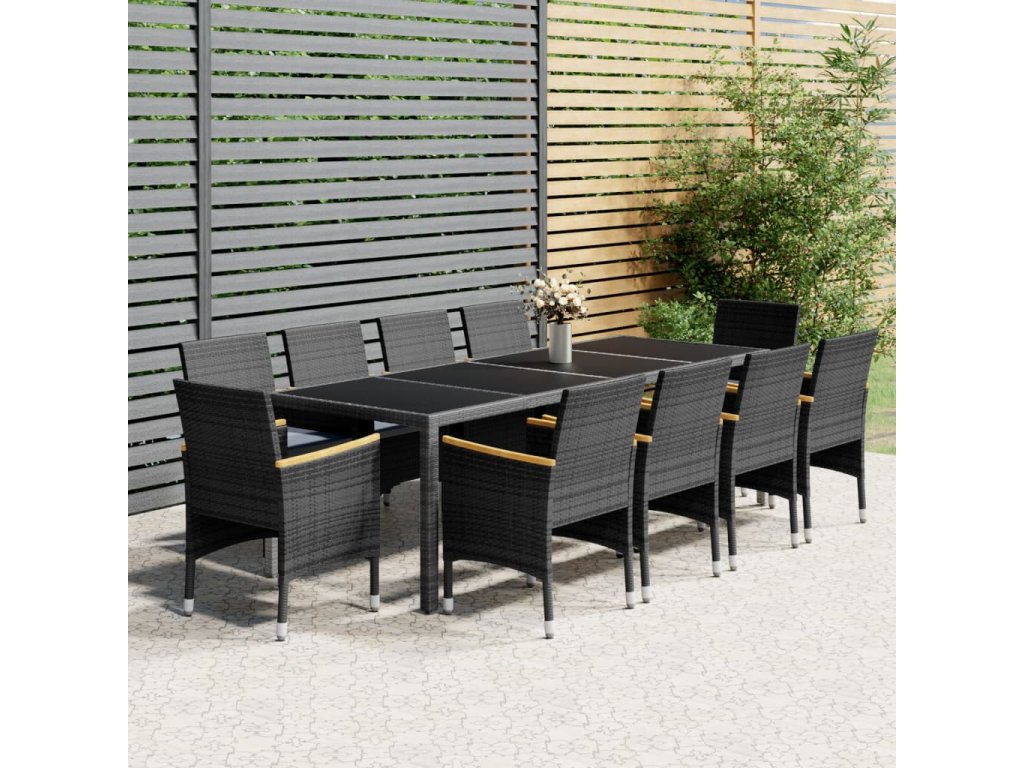 11dílný zahradní jídelní set polyratan šedý 3058579
