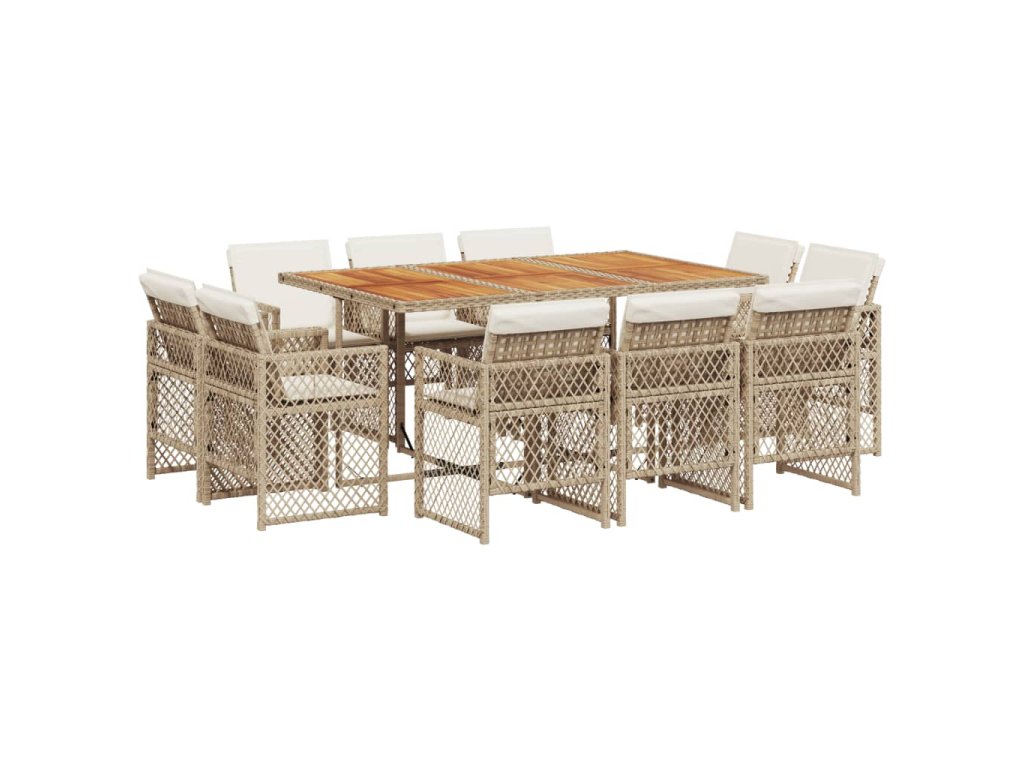 11dílný zahradní jídelní set s poduškami béžový polyratan 3210856