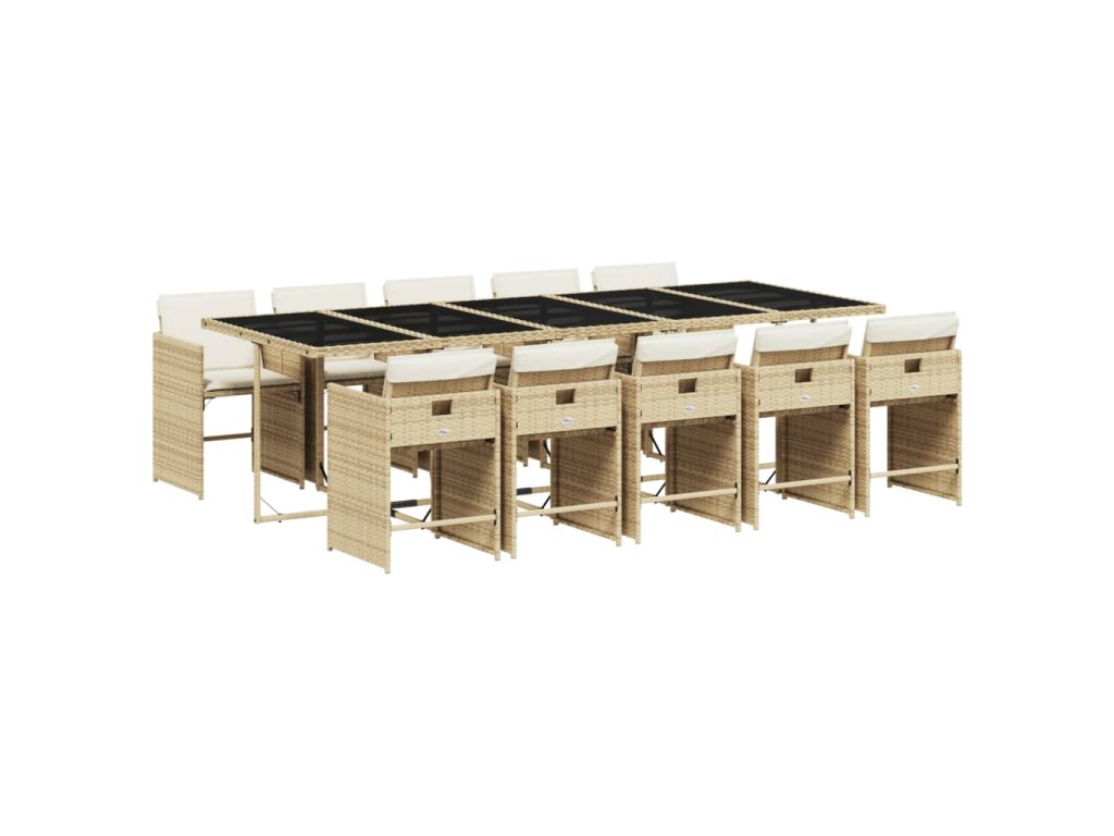 11dílný zahradní jídelní set s poduškami béžový polyratan 3211114