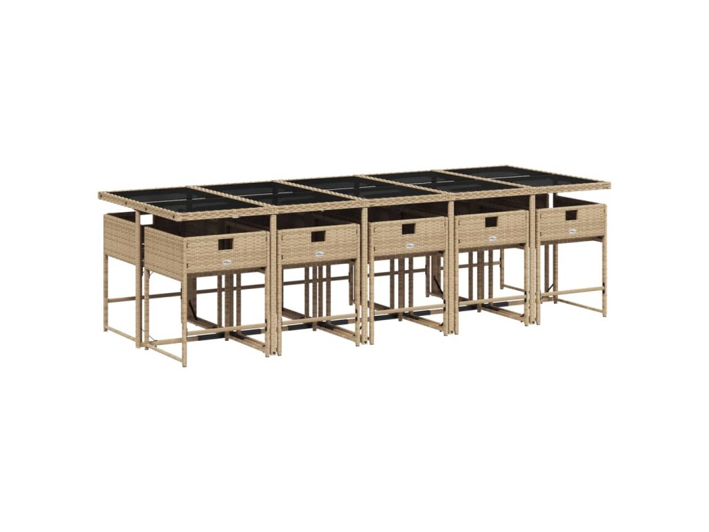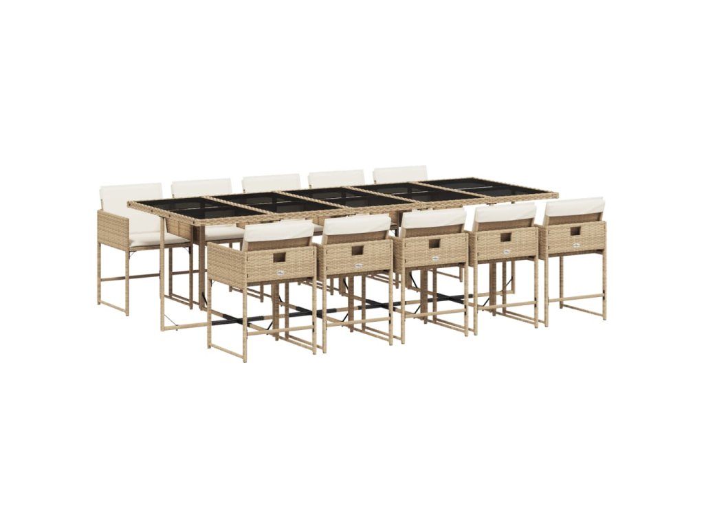 11dílný zahradní jídelní set s poduškami béžový polyratan 3211294