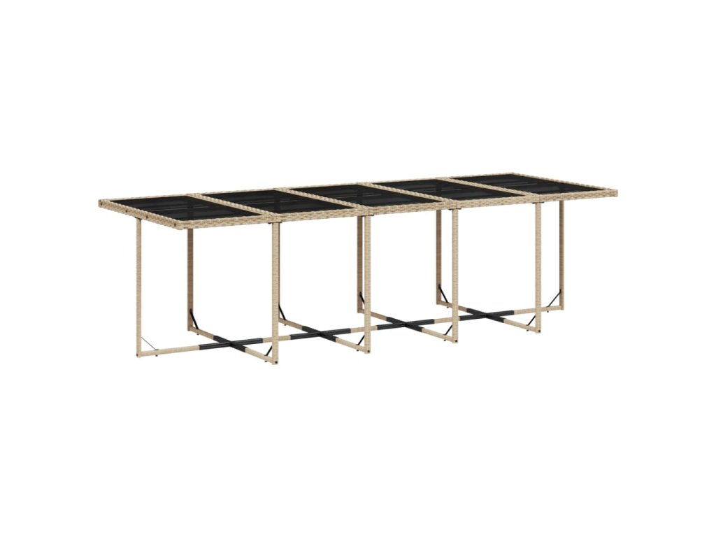 - Skleněná deska stolu: Deska venkovního stolu je zhotovena ze silného a odolného tvrzeného skla, takže ji snadno očistíte vlhkým hadříkem a zároveň do vašeho venkovního prostoru vnese nádech elegance.