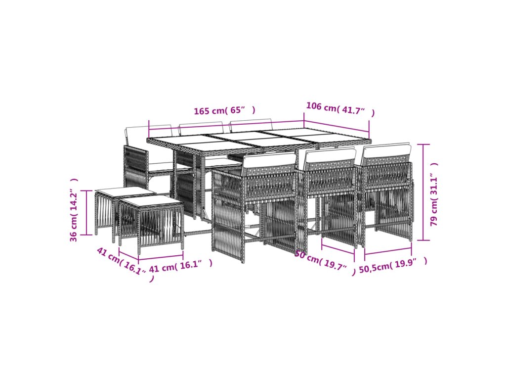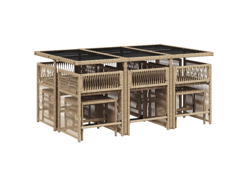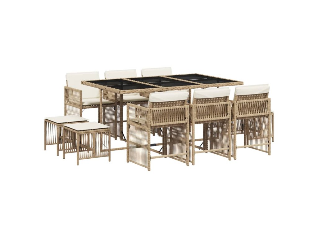 11dílný zahradní jídelní set s poduškami béžový polyratan 3211690