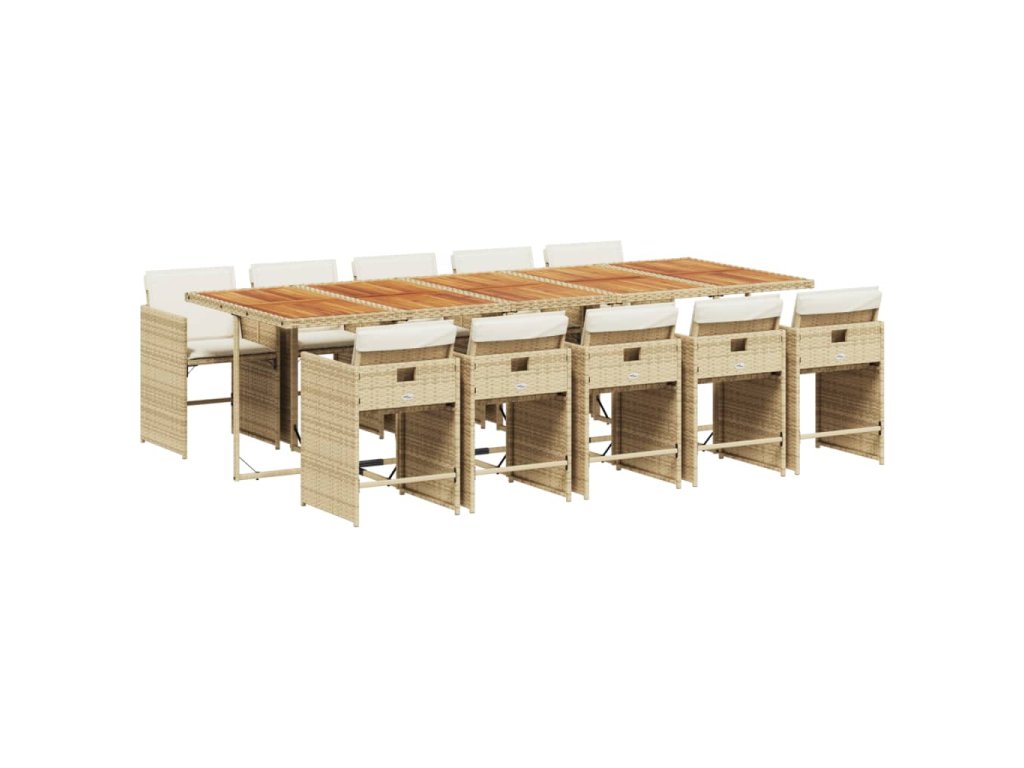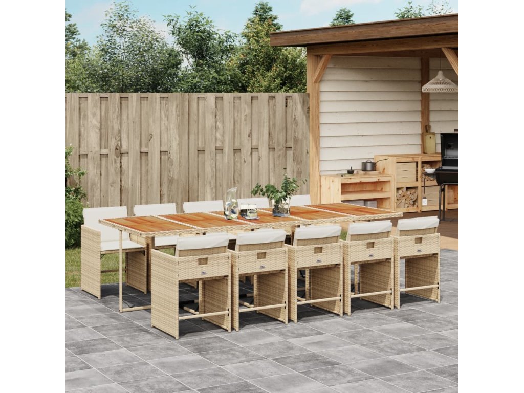 11dílný zahradní jídelní set s poduškami béžový polyratan 3277887