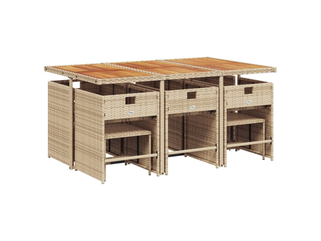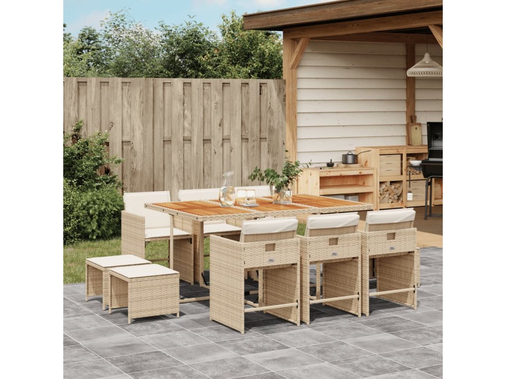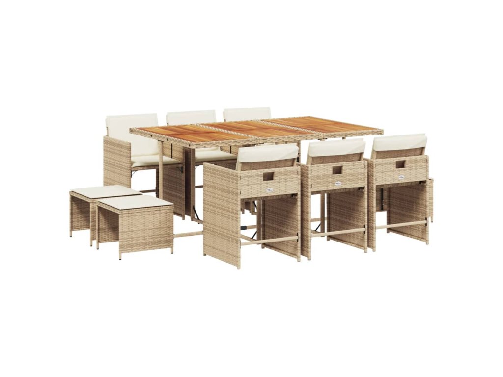 11dílný zahradní jídelní set s poduškami béžový polyratan 3277923