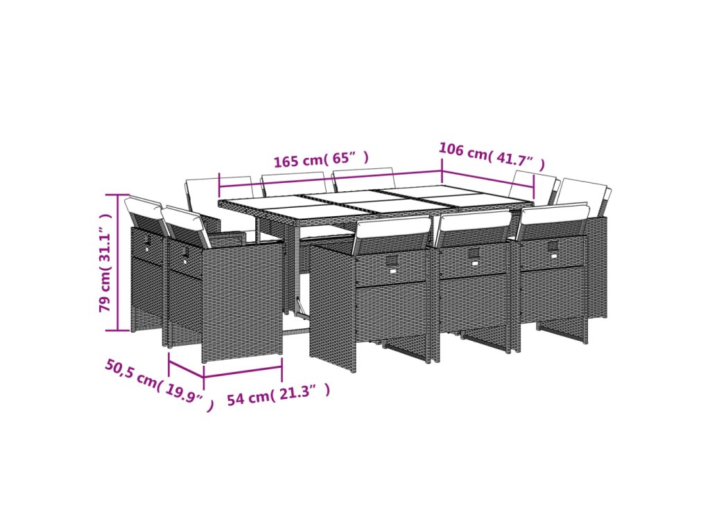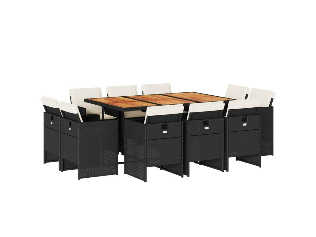 11dílný zahradní jídelní set s poduškami černý polyratan 3210675