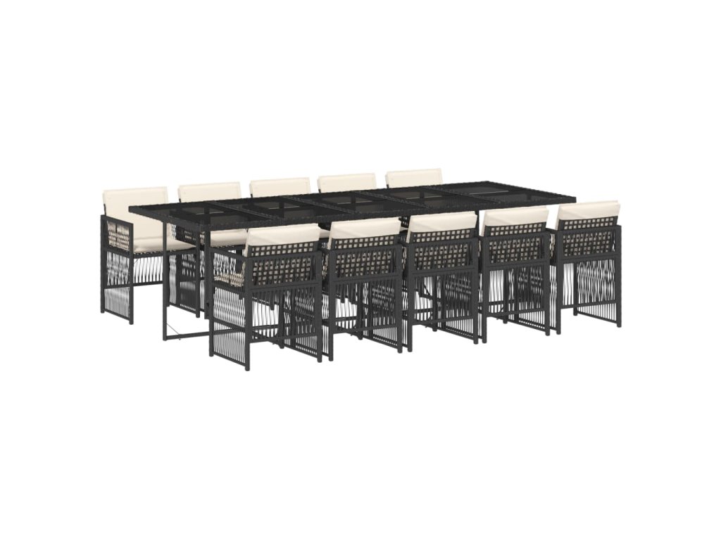 11dílný zahradní jídelní set s poduškami černý polyratan 3210930