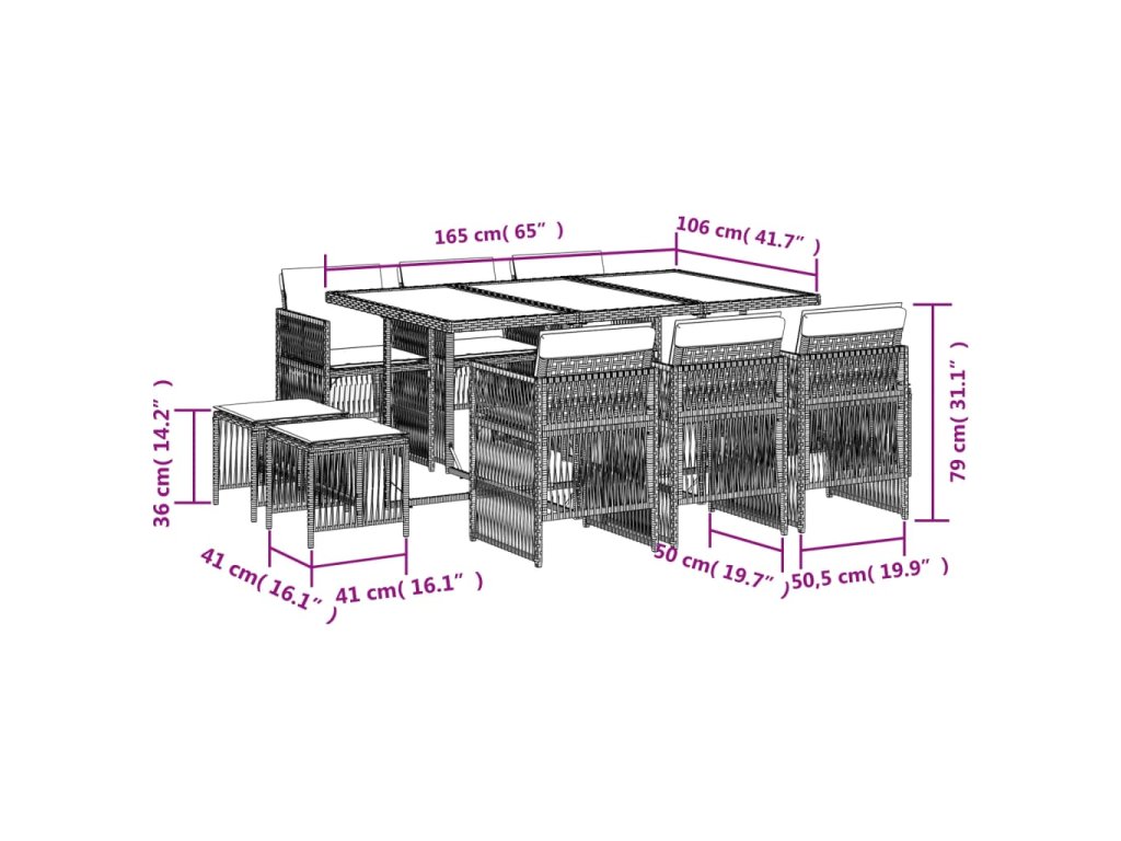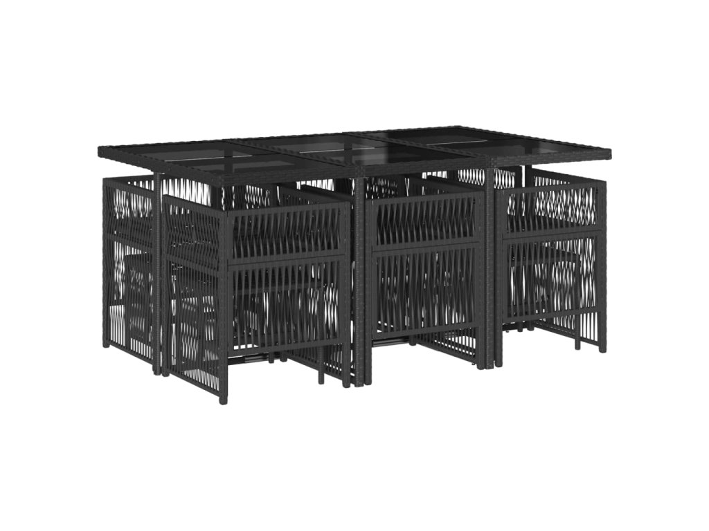 11dílný zahradní jídelní set s poduškami černý polyratan 3210967