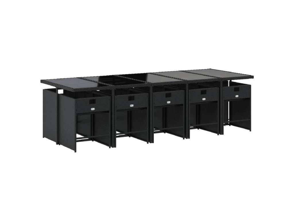 11dílný zahradní jídelní set s poduškami černý polyratan 3211111