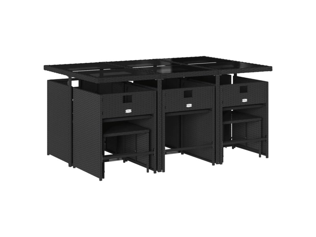 11dílný zahradní jídelní set s poduškami černý polyratan 3211147