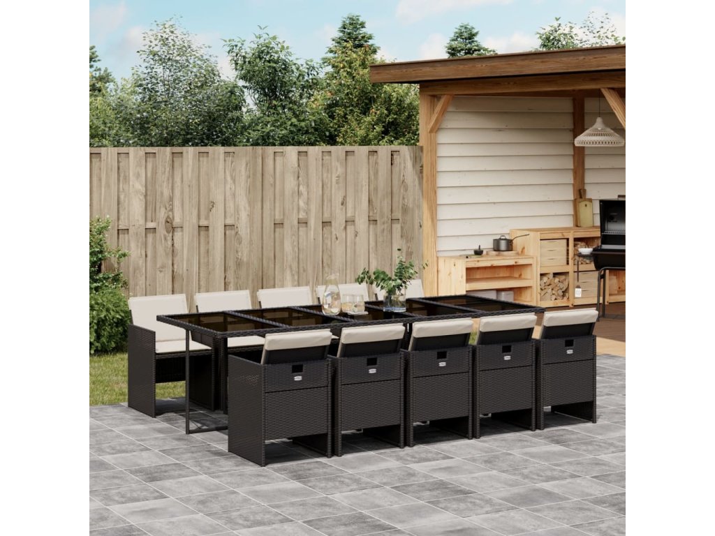 11dílný zahradní jídelní set s poduškami černý polyratan 3277697