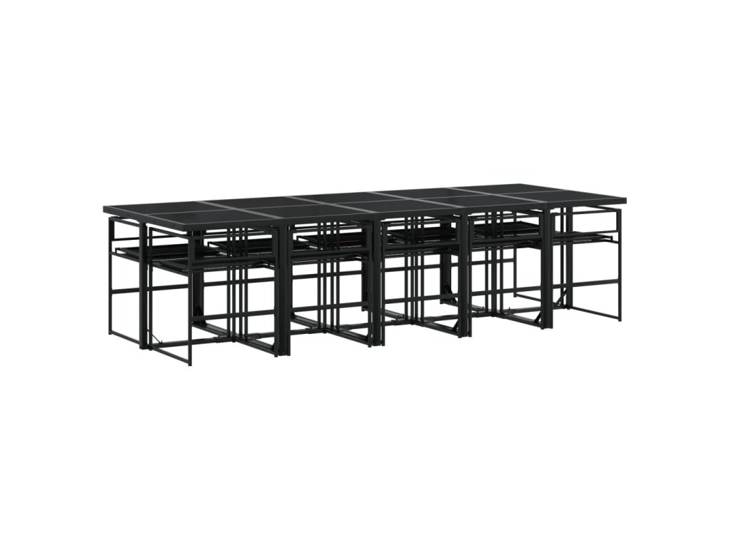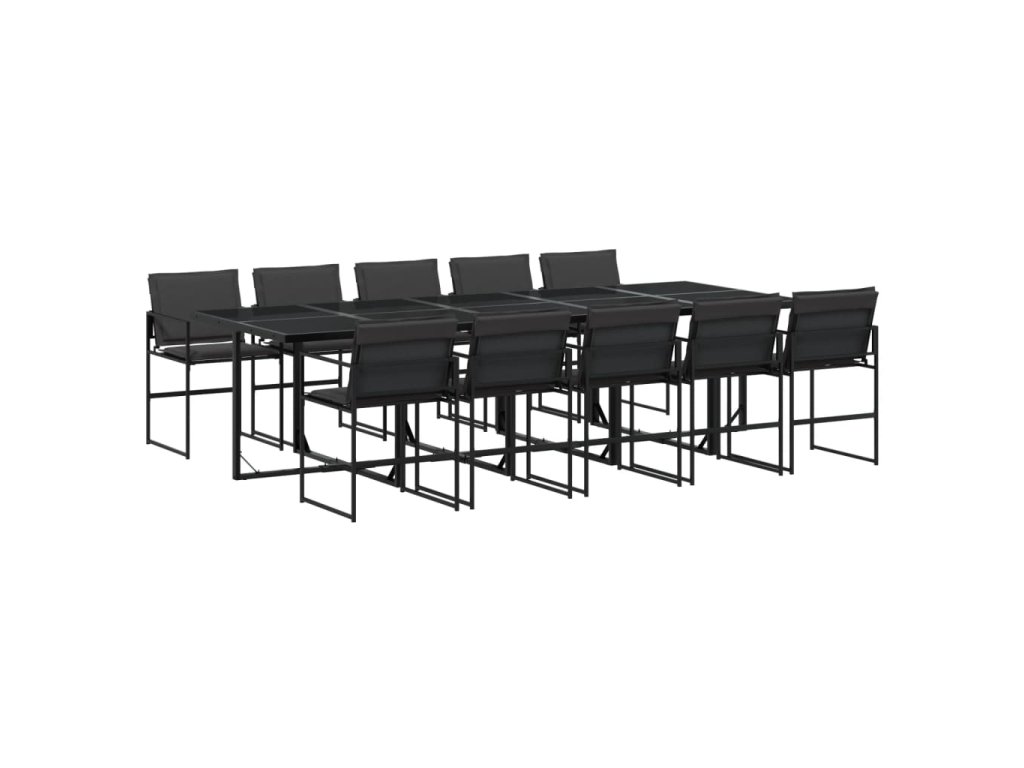 11dílný zahradní jídelní set s poduškami černý textilen 3295076