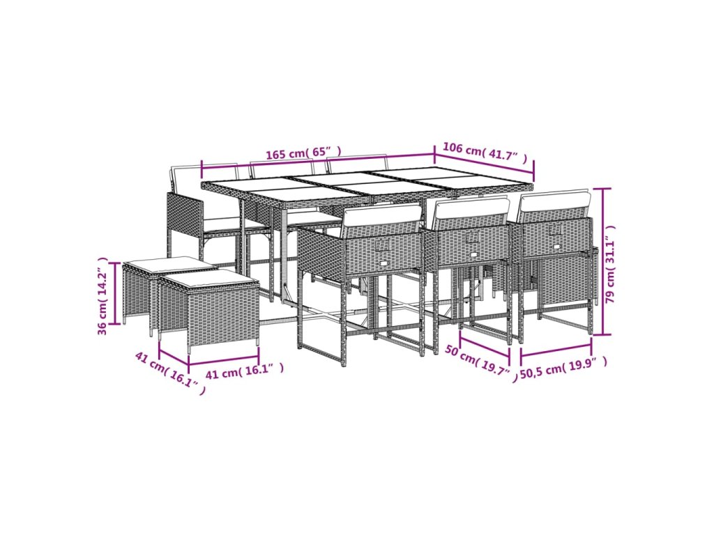 11dílný zahradní jídelní set s poduškami hnědý polyratan 3211329