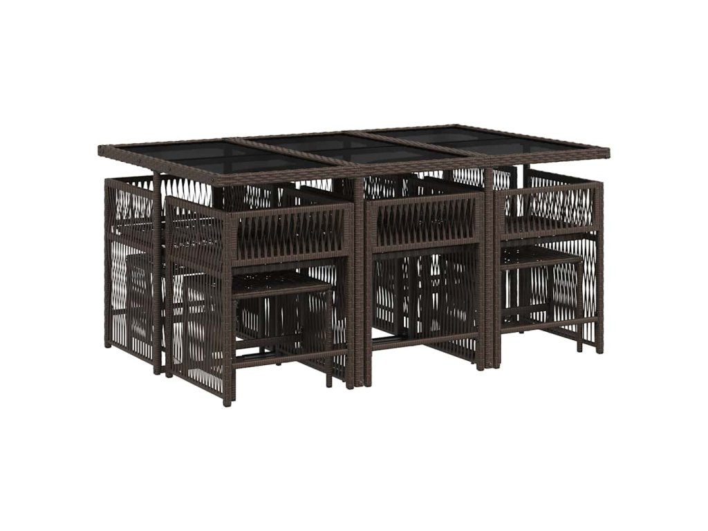 11dílný zahradní jídelní set s poduškami hnědý polyratan 3211689