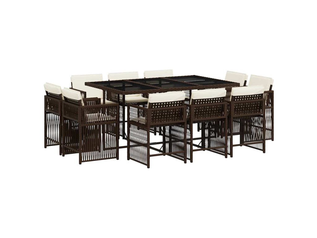 11dílný zahradní jídelní set s poduškami hnědý polyratan 3211749