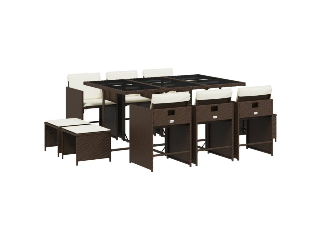 11dílný zahradní jídelní set s poduškami hnědý polyratan 3277916