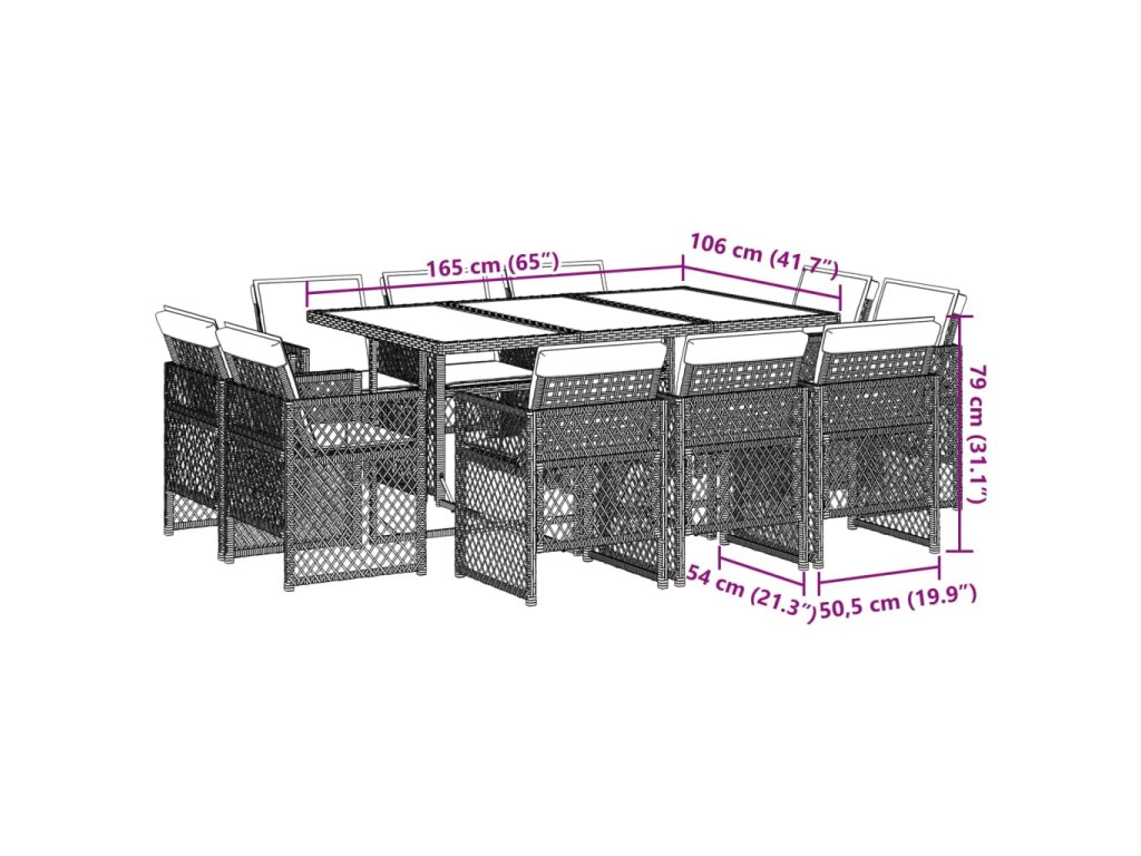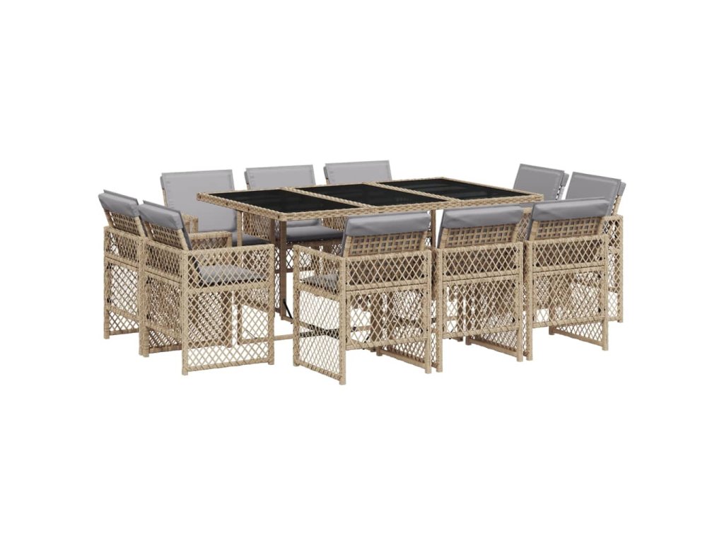 11dílný zahradní jídelní set s poduškami mix béžové polyratan 3210852