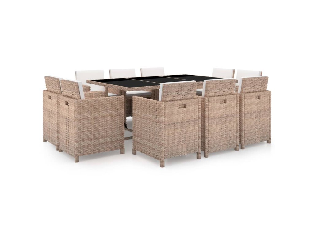11dílný zahradní jídelní set s poduškami polyratan béžový 42549