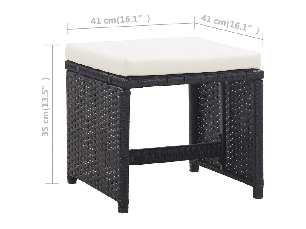 11dílný zahradní jídelní set s poduškami polyratan černý 42523