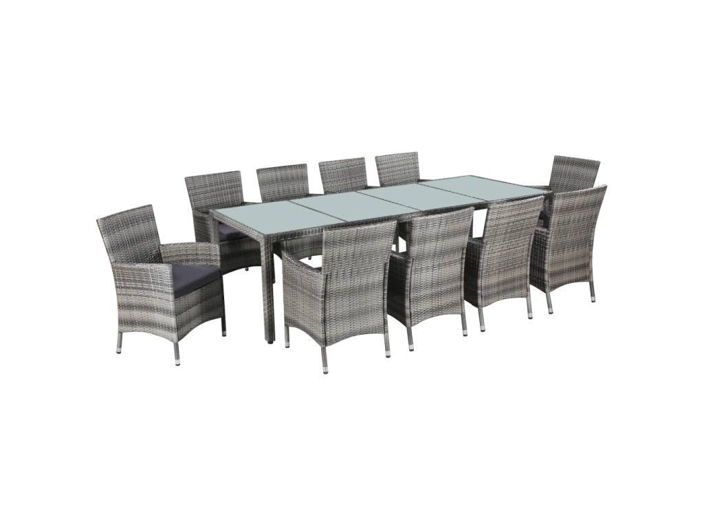 11dílný zahradní jídelní set s poduškami polyratan šedý 43957