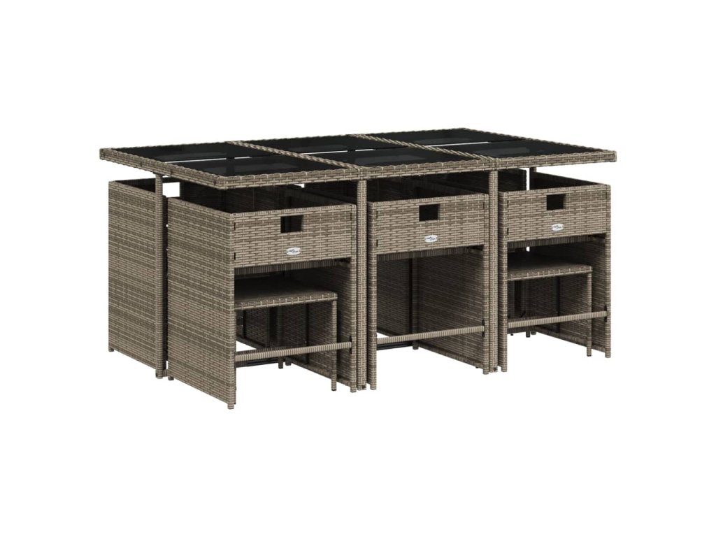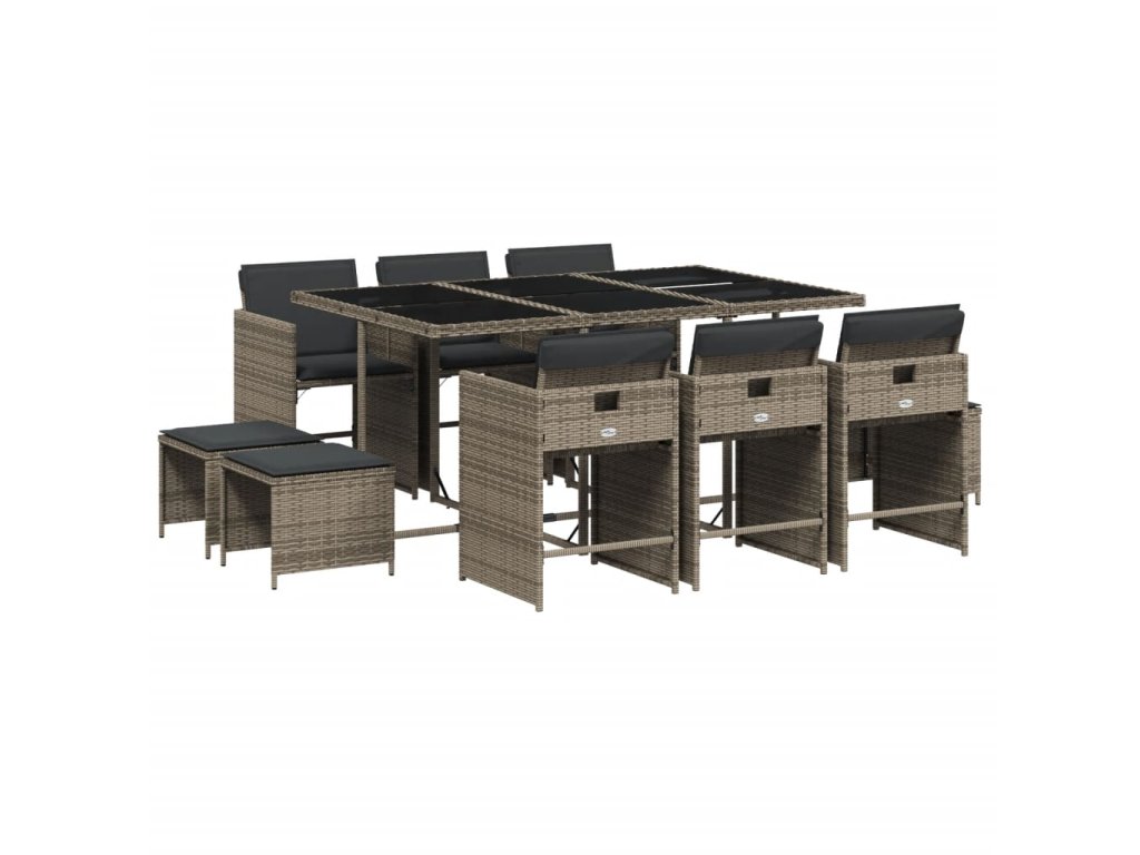 11dílný zahradní jídelní set s poduškami šedý polyratan 3211148