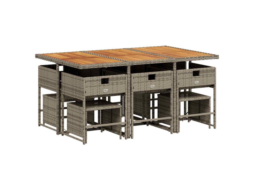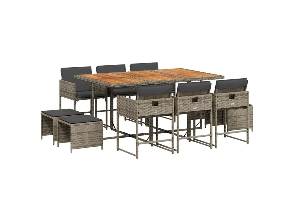 11dílný zahradní jídelní set s poduškami šedý polyratan 3211334
