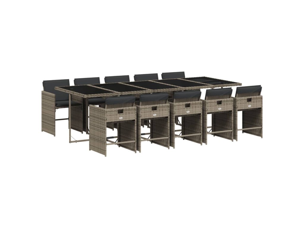 11dílný zahradní jídelní set s poduškami šedý polyratan 3277879