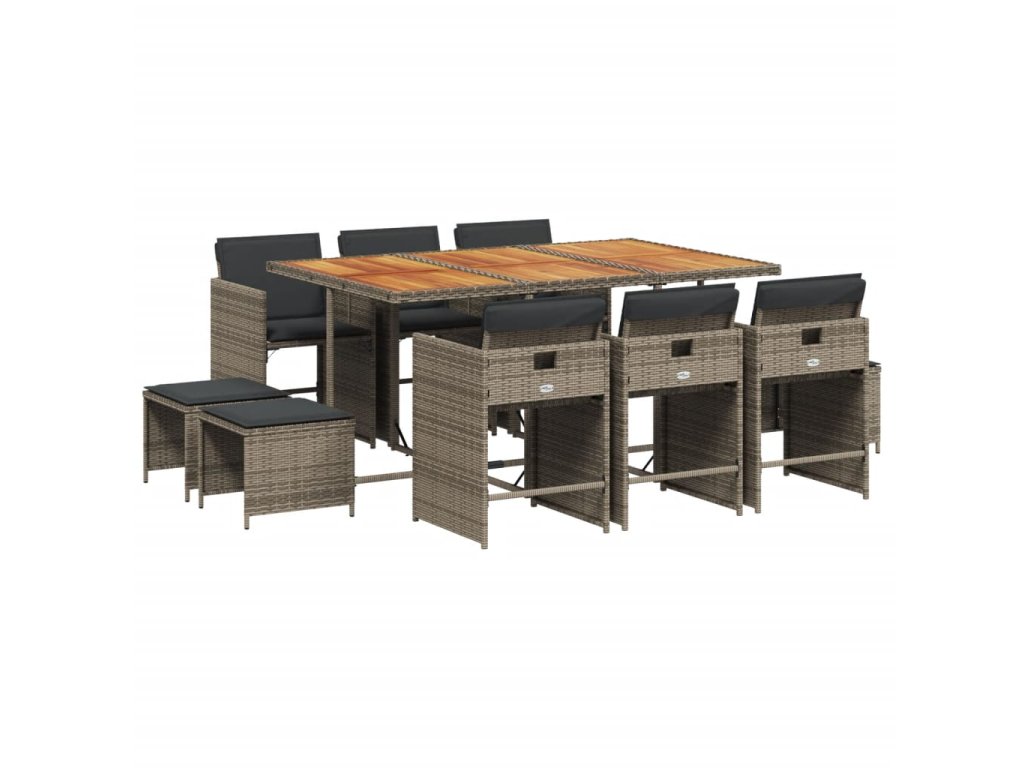 11dílný zahradní jídelní set s poduškami šedý polyratan 3277921