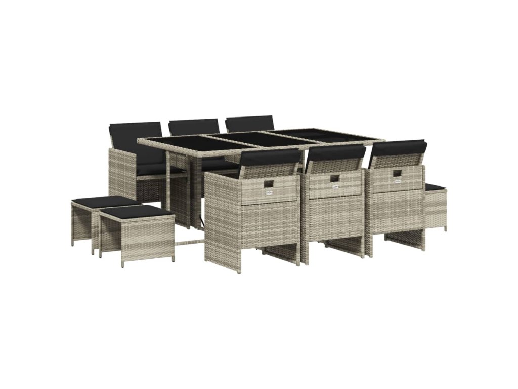 11dílný zahradní jídelní set s poduškami světle šedý polyratan 3210611