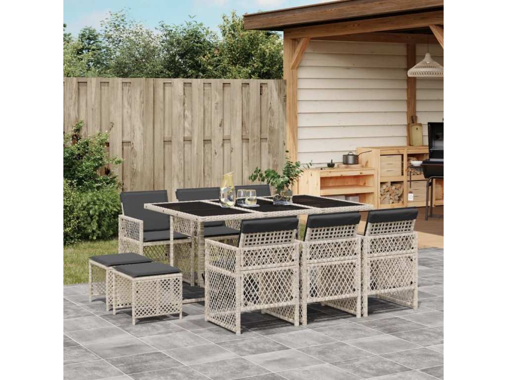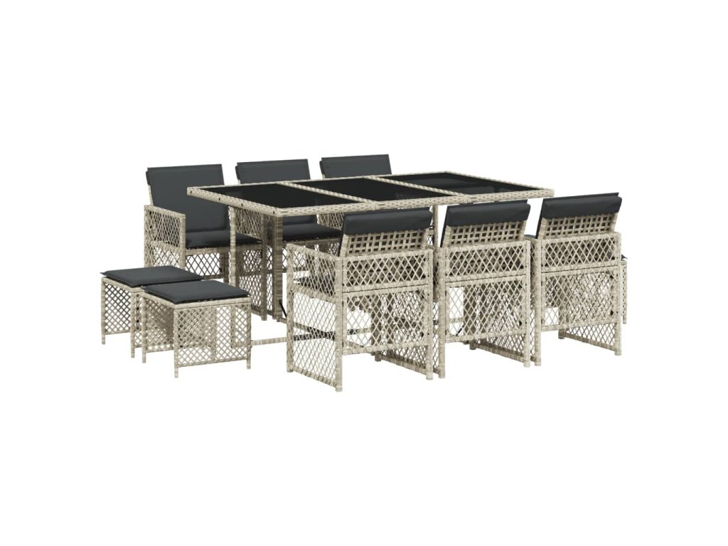 11dílný zahradní jídelní set s poduškami světle šedý polyratan 3210791