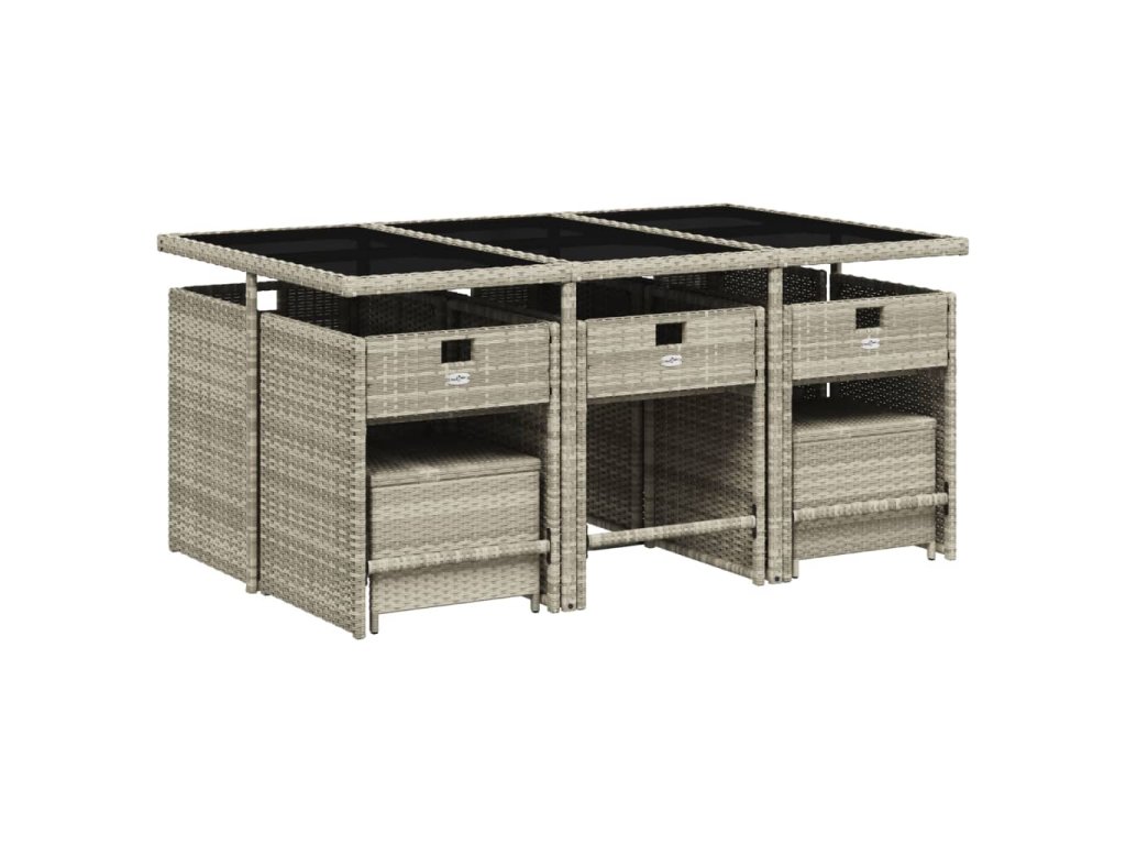 11dílný zahradní jídelní set s poduškami světle šedý polyratan 3211151