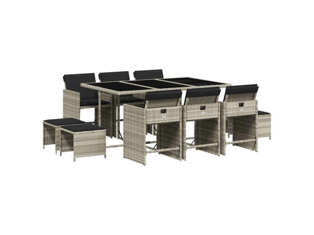11dílný zahradní jídelní set s poduškami světle šedý polyratan 3277918