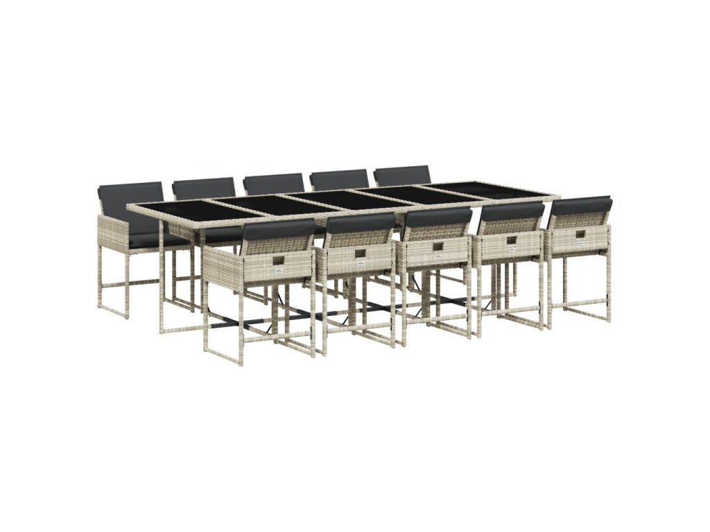 11dílný zahradní jídelní set s poduškami světle šedý polyratan 3278062