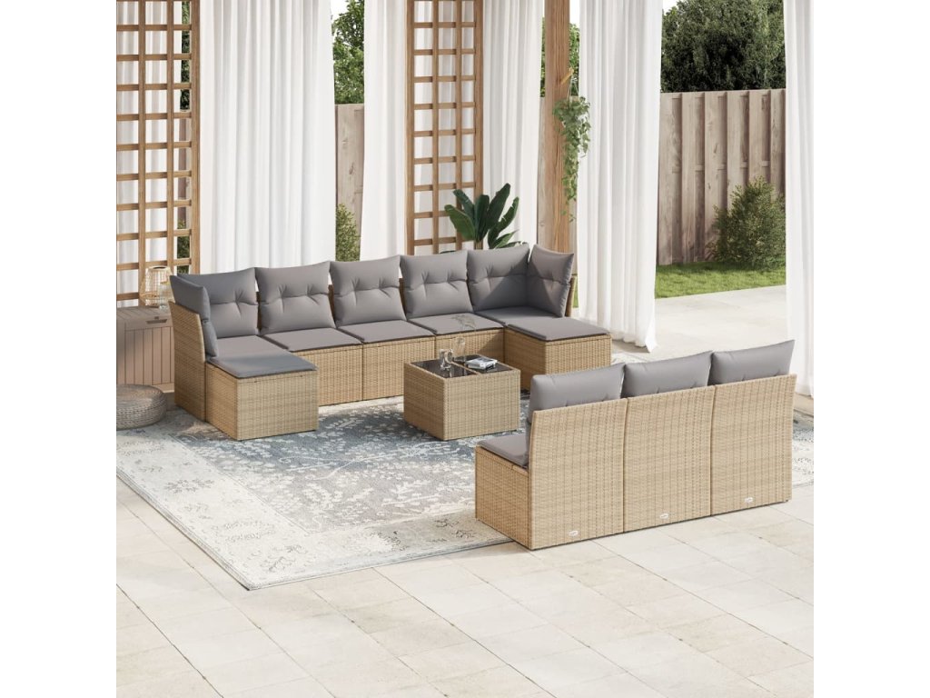 11dílný zahradní sedací souprava s poduškami béžový polyratan 3218299