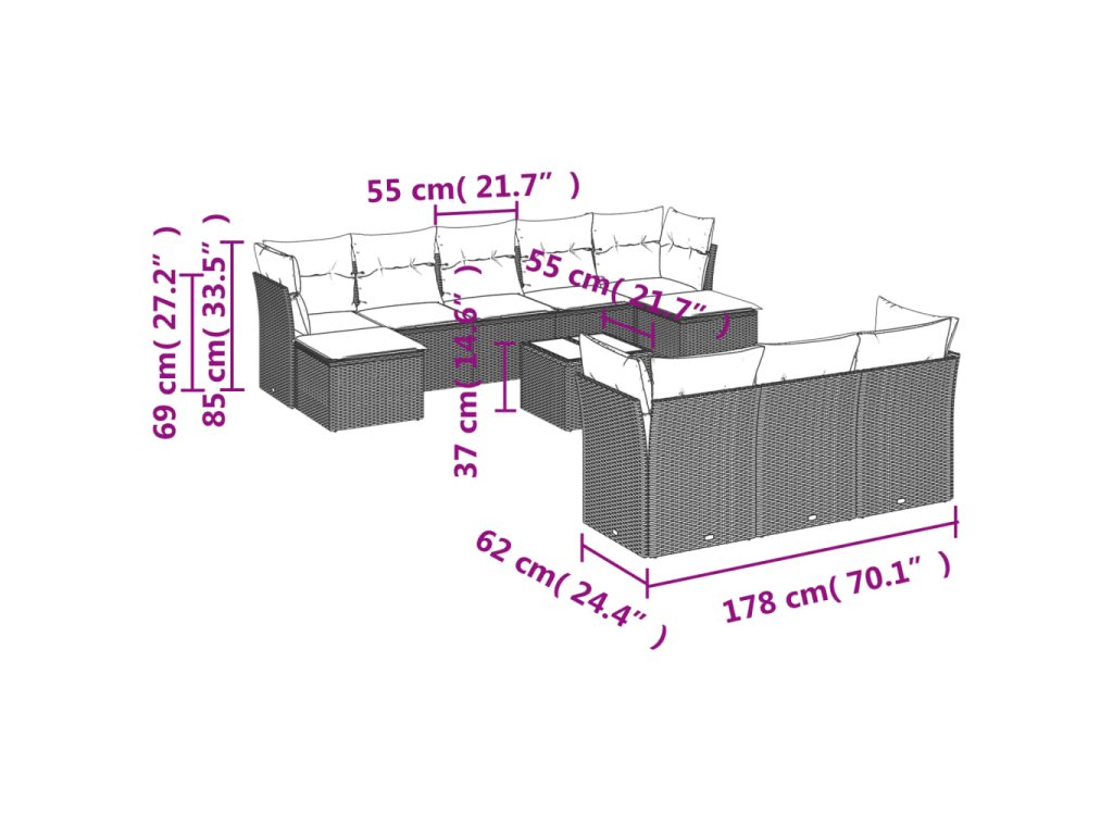 11dílný zahradní sedací souprava s poduškami béžový polyratan 3218338