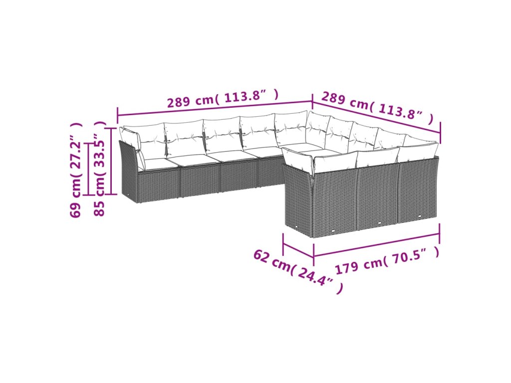 11dílný zahradní sedací souprava s poduškami béžový polyratan 3218408