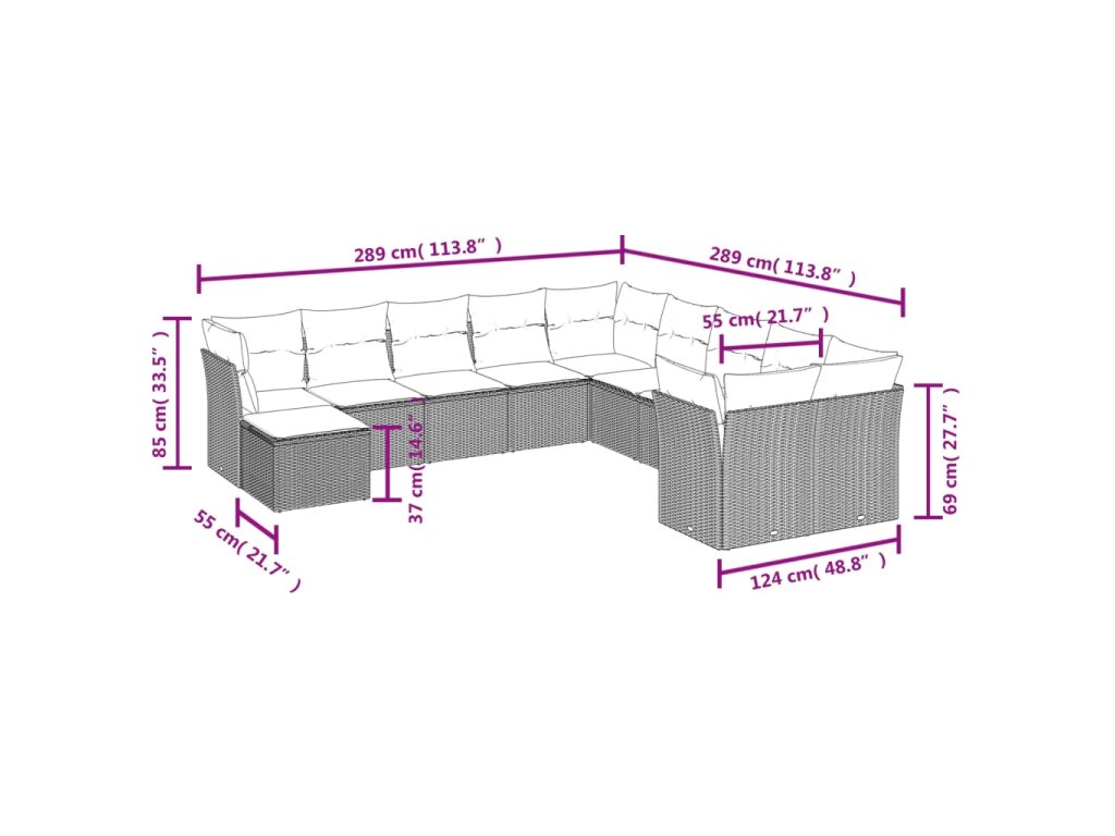 11dílný zahradní sedací souprava s poduškami béžový polyratan 3218608