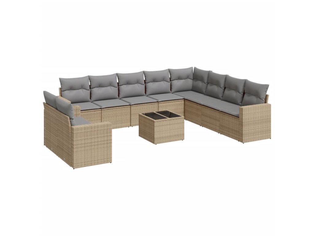 11dílný zahradní sedací souprava s poduškami béžový polyratan 3219169