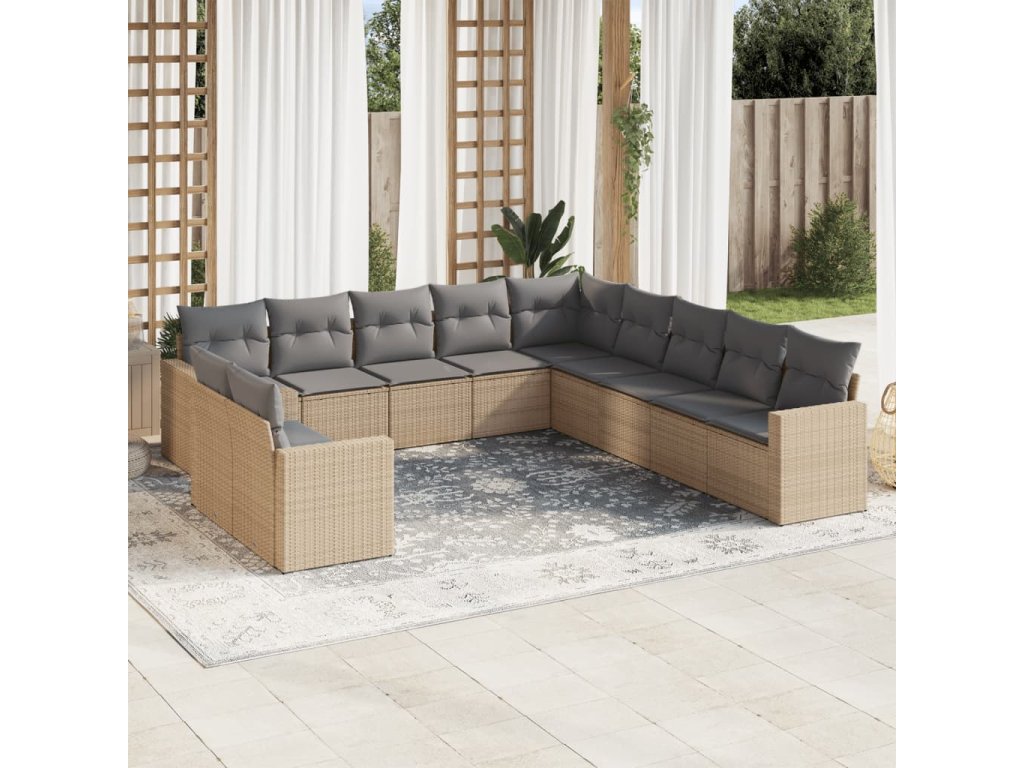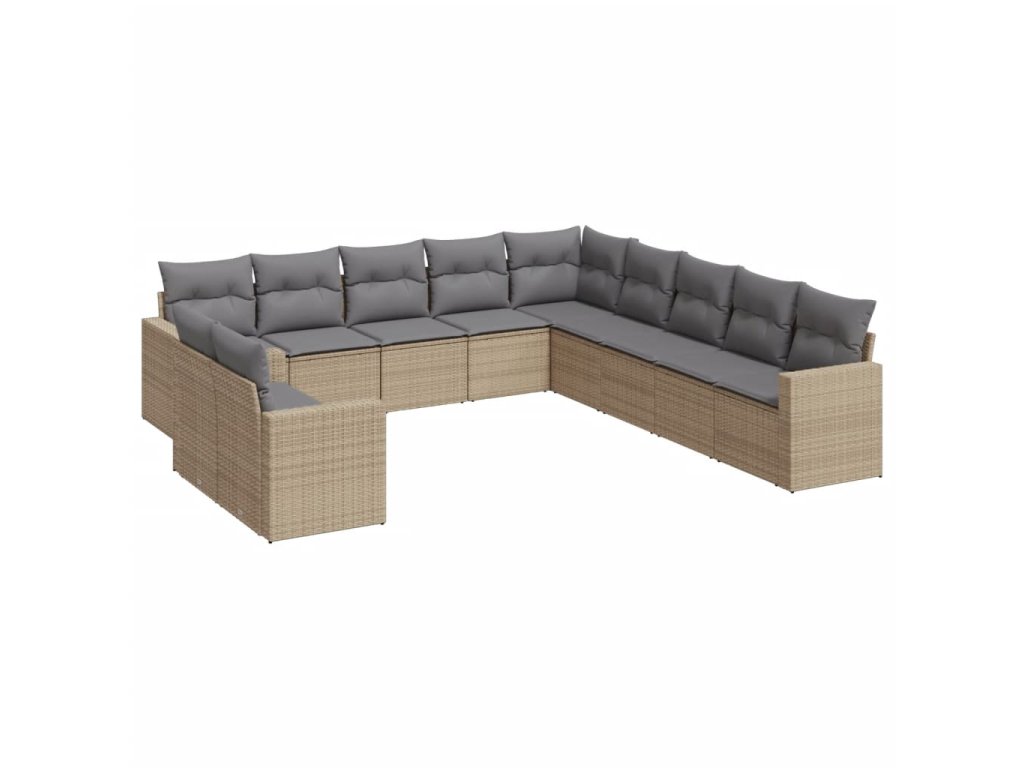 11dílný zahradní sedací souprava s poduškami béžový polyratan 3219179