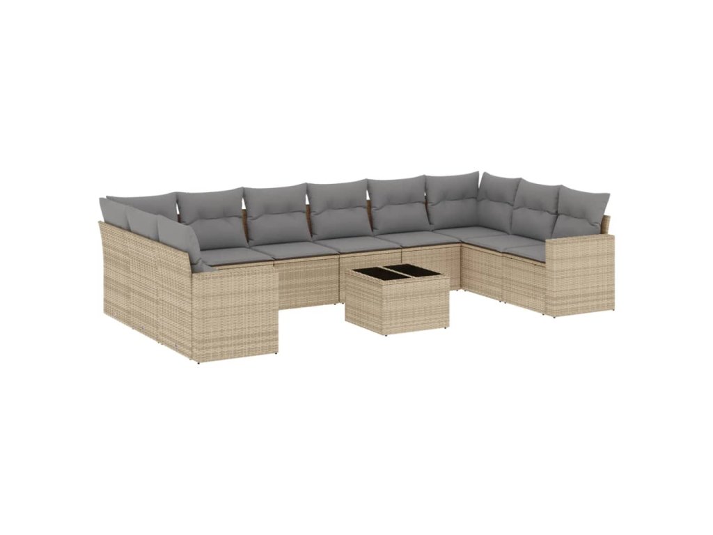 11dílný zahradní sedací souprava s poduškami béžový polyratan 3219469