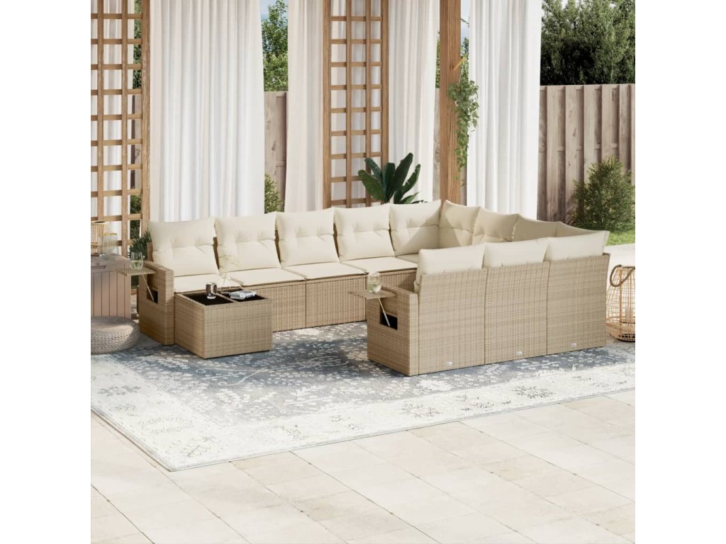 11dílný zahradní sedací souprava s poduškami béžový polyratan 3220727