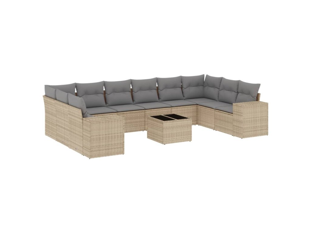 11dílný zahradní sedací souprava s poduškami béžový polyratan 3223078