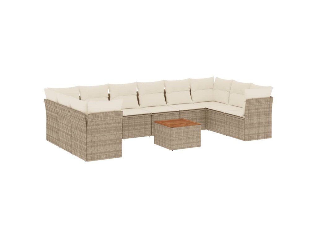 11dílný zahradní sedací souprava s poduškami béžový polyratan 3223832