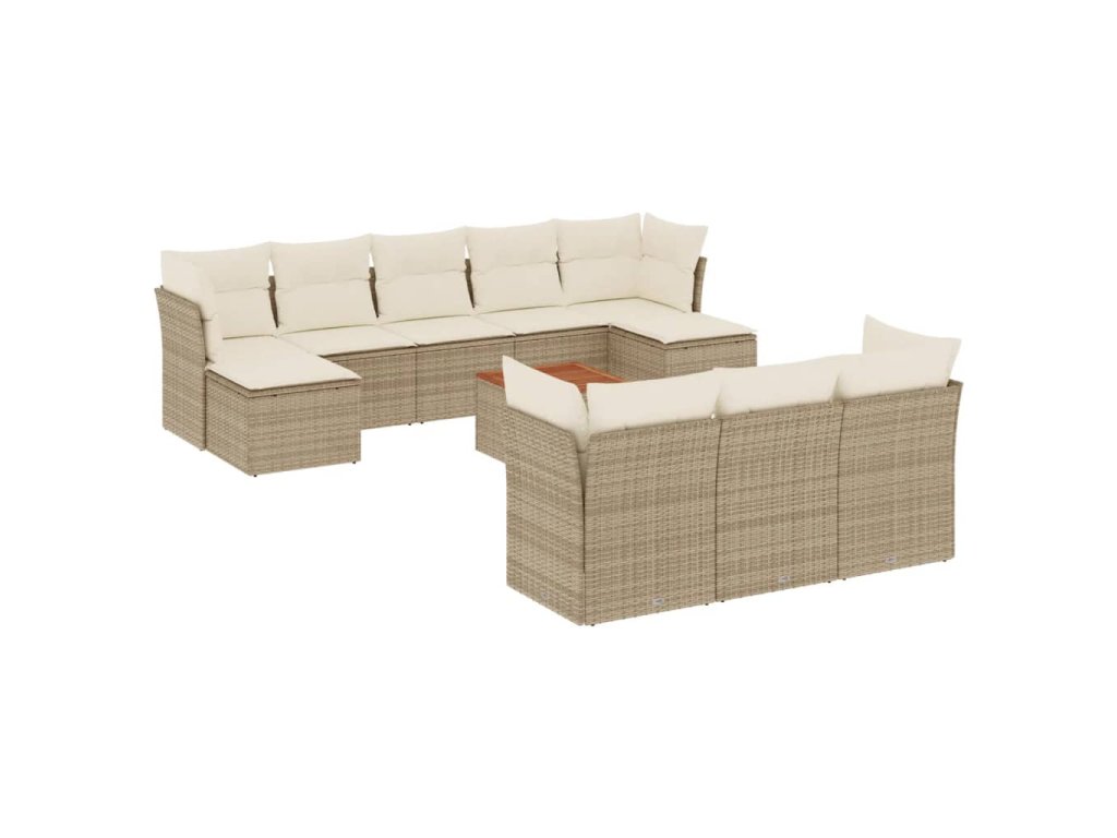 11dílný zahradní sedací souprava s poduškami béžový polyratan 3223881