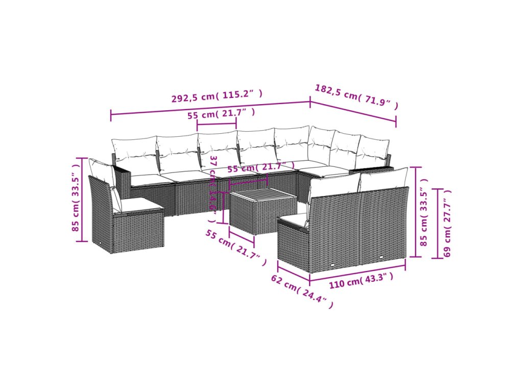 11dílný zahradní sedací souprava s poduškami béžový polyratan 3224176