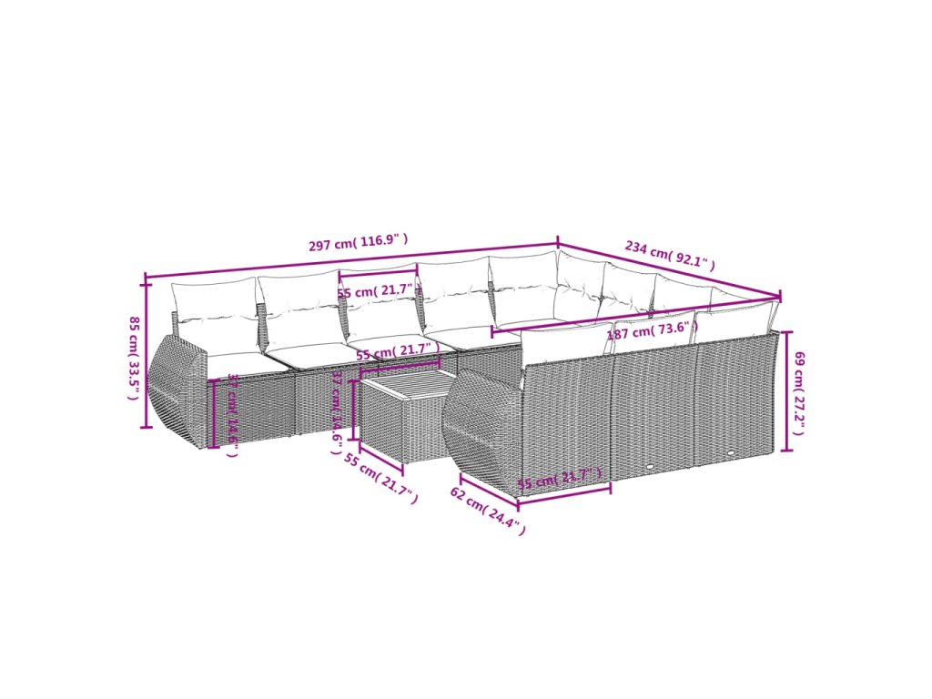 Tato zahradní sedací souprava je dokonalým doplňkem vaší zahrady, terasy nebo dvorku a poskytne vám pohodlné a příjemné místo, kde si můžete povídat s rodinou a přáteli nebo jen tak odpočívat a užívat si pobyt venku.