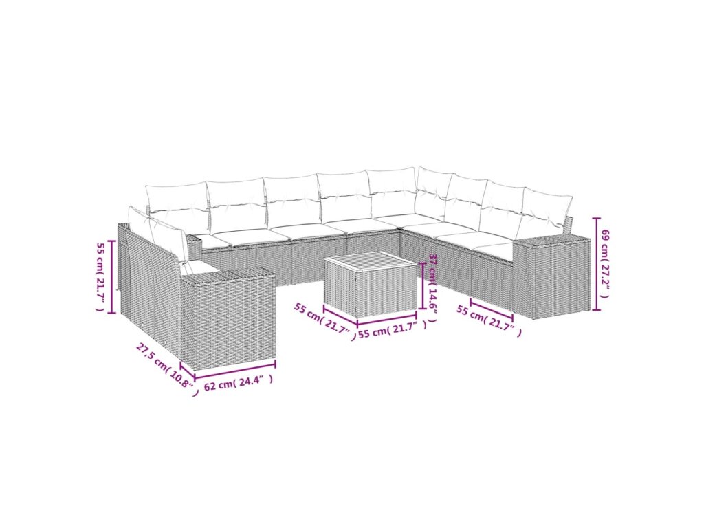 11dílný zahradní sedací souprava s poduškami béžový polyratan 3225520