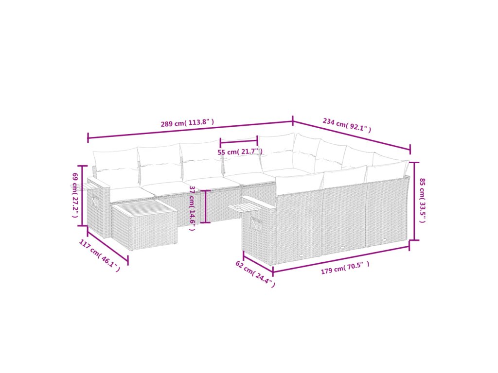 11dílný zahradní sedací souprava s poduškami béžový polyratan 3227206
