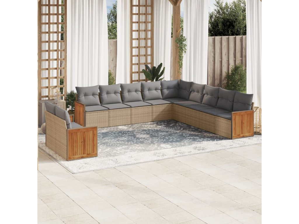 11dílný zahradní sedací souprava s poduškami béžový polyratan 3227809