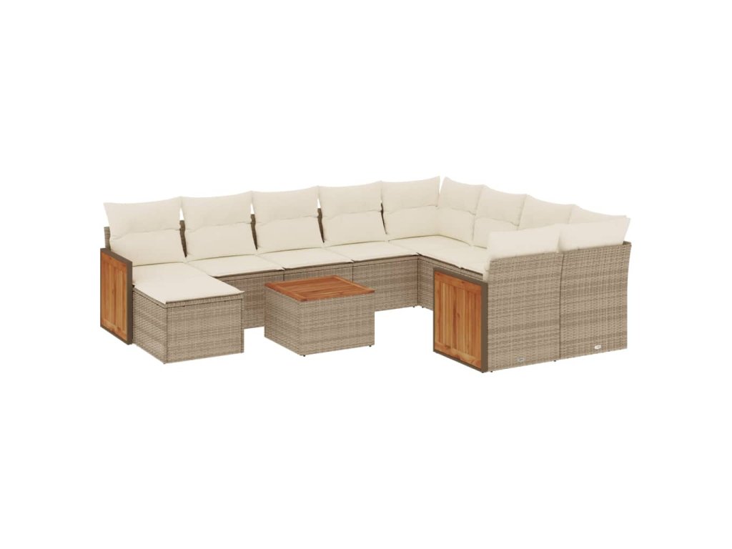 11dílný zahradní sedací souprava s poduškami béžový polyratan 3228242