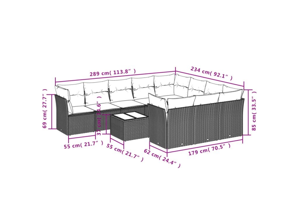- Celkové rozměry pohovky: 289 x 234 x 69 cm (Š x H x V)